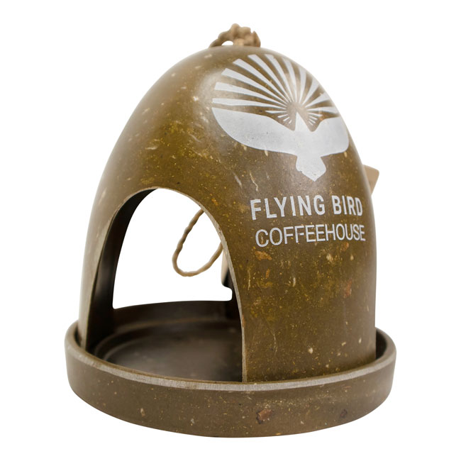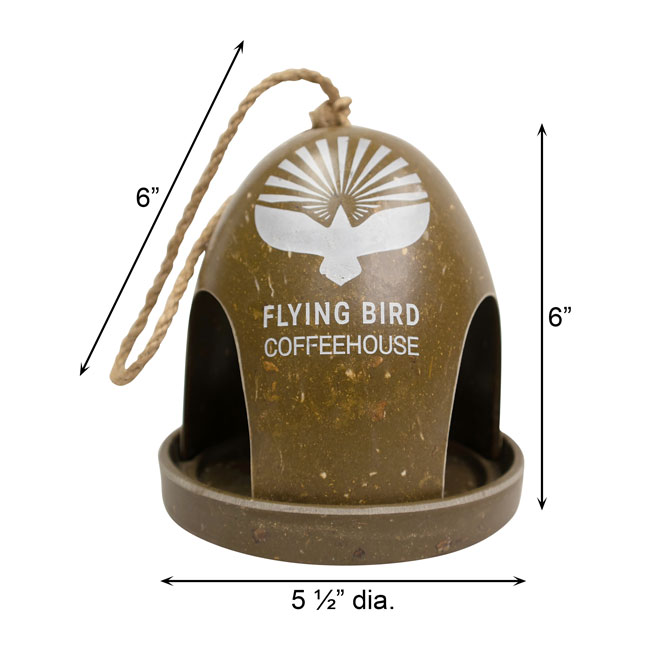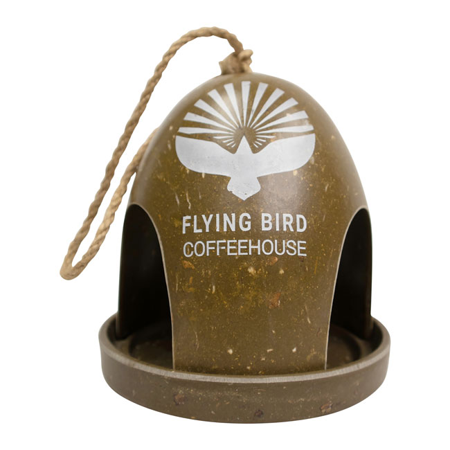 • Striking image of a bird with the words "Flying Bird Coffeehouse" appears on feeder front