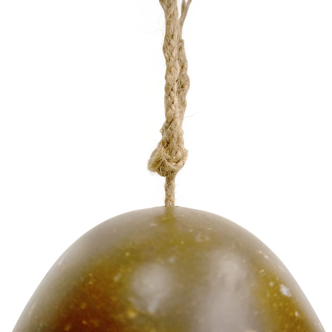 • Twine atop the coffee-bean shaped item allows for easy hanging from a branch or hook