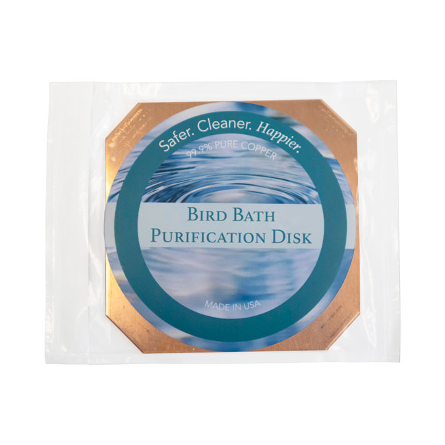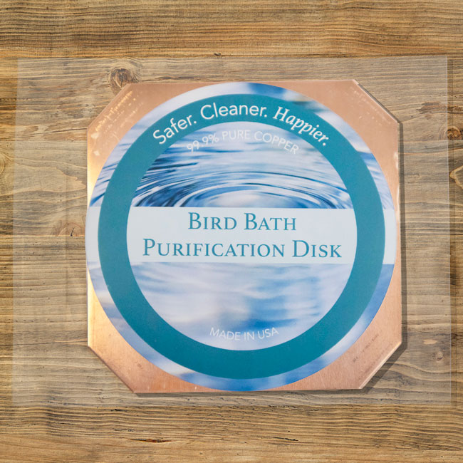 - Thin, 4" x 4" copper disk is made to sit in your existing bird bath.