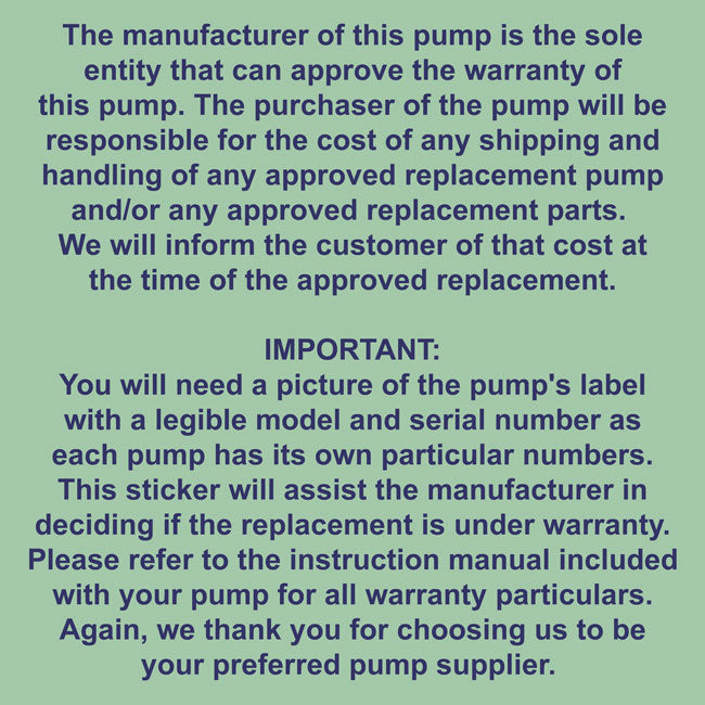 Easily pump water from your well to your water tank with the Red Lion Submersible Well Pump. This sturdy pump is perfect for wells up to 200' deep. Install the pump inside a well 4" in diameter or larger, for significant water flow when needed. A band of suction screening above the pump motor prevents debris from entering the unit and clogging its impellers, for a full water flow and reduced risk of corrosion. The generous, 1 1/4" discharge offers a robust water flow to your water supply system, and its built-in check valve keeps pressure in the system while preventing backflow. The sturdy, 2 wire motor ensures safe, quiet, and lasting operation. The 1/2 horsepower, single phase motor runs 3450 RPMs, and uses 115 volts for power. The stainless steel chassis will certainly last for several seasons, for a worry free water pump. Move water from your well to your storage area easily with this Submersible Well Pump. Three year limited warranty.
