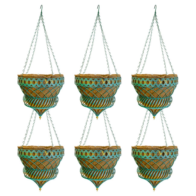 Display a wide assortment of favorite plants and flowers in elegant style with this bold 6 Pack of Austram Green Queen Anne Parasol Hanging Planters.