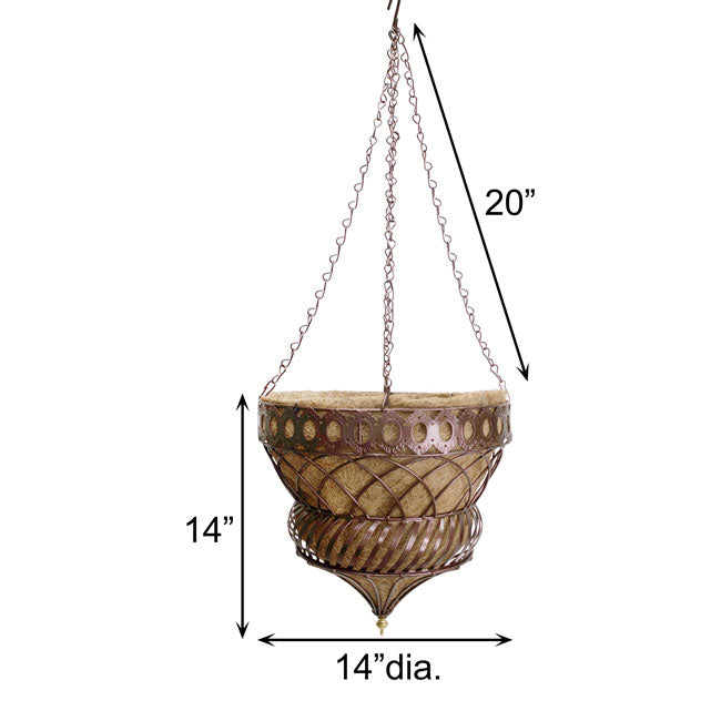 - Decorative, rounded hanging planter gives ample space for hanging flowers